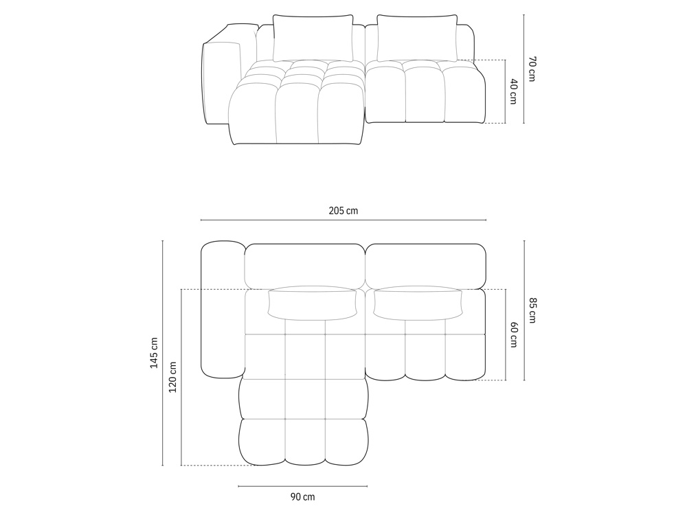 Samtiges Linkes Modulare Ecksofa, "Lorella", 3 Sitze, 205x145x70