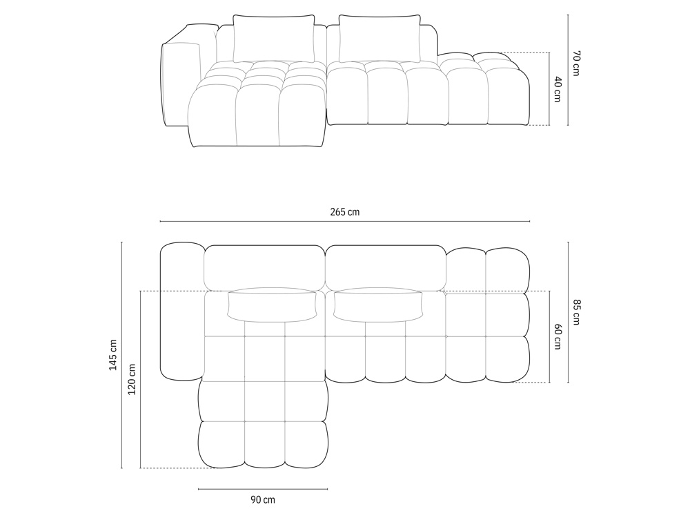 Maße: 265x145x70 cm