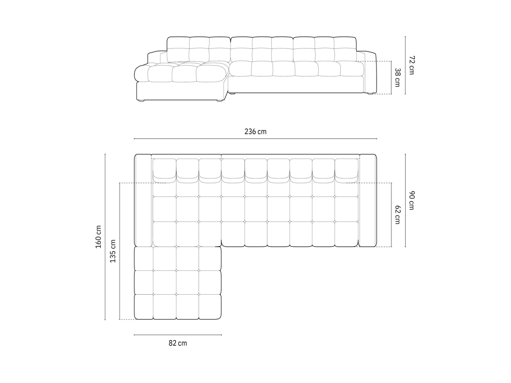 Samtiges linkes Ecksofa, "Yohan", 4 Sitze, 236x160x72
