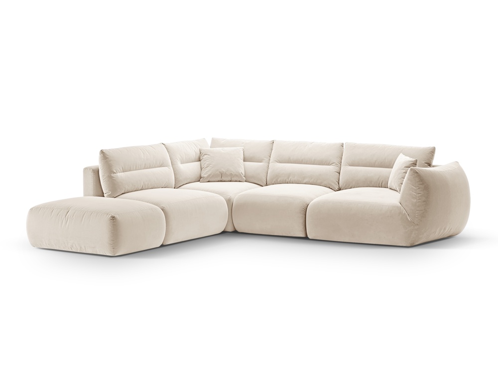 Aksamitna modułowa lewostronna sofa narożna, "Maurie", 7 miejscowa, 290x297x90