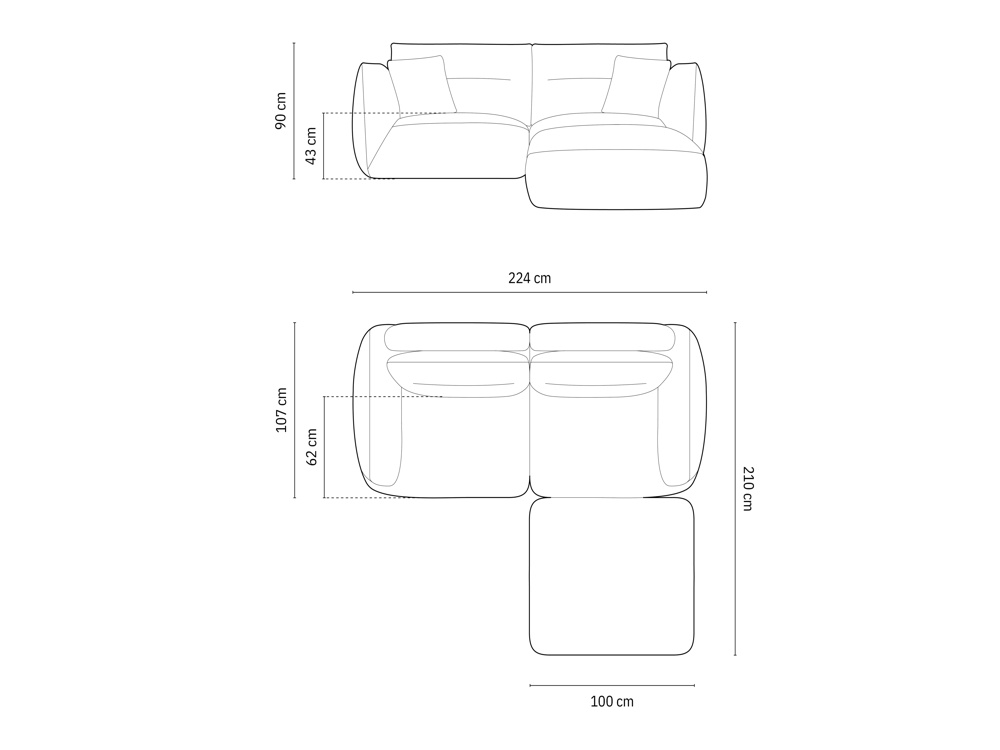 Wymiary: 224x210x90 cm