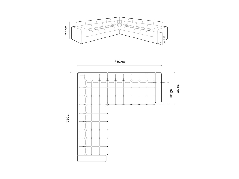 Aksamitna symetryczna sofa narożna, "Yohan", 5 miejscowa, 236x236x72