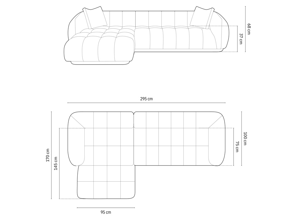 Canapé D'Angle Gauche Modulaire, "Julia", 3 Places, 295x170x68