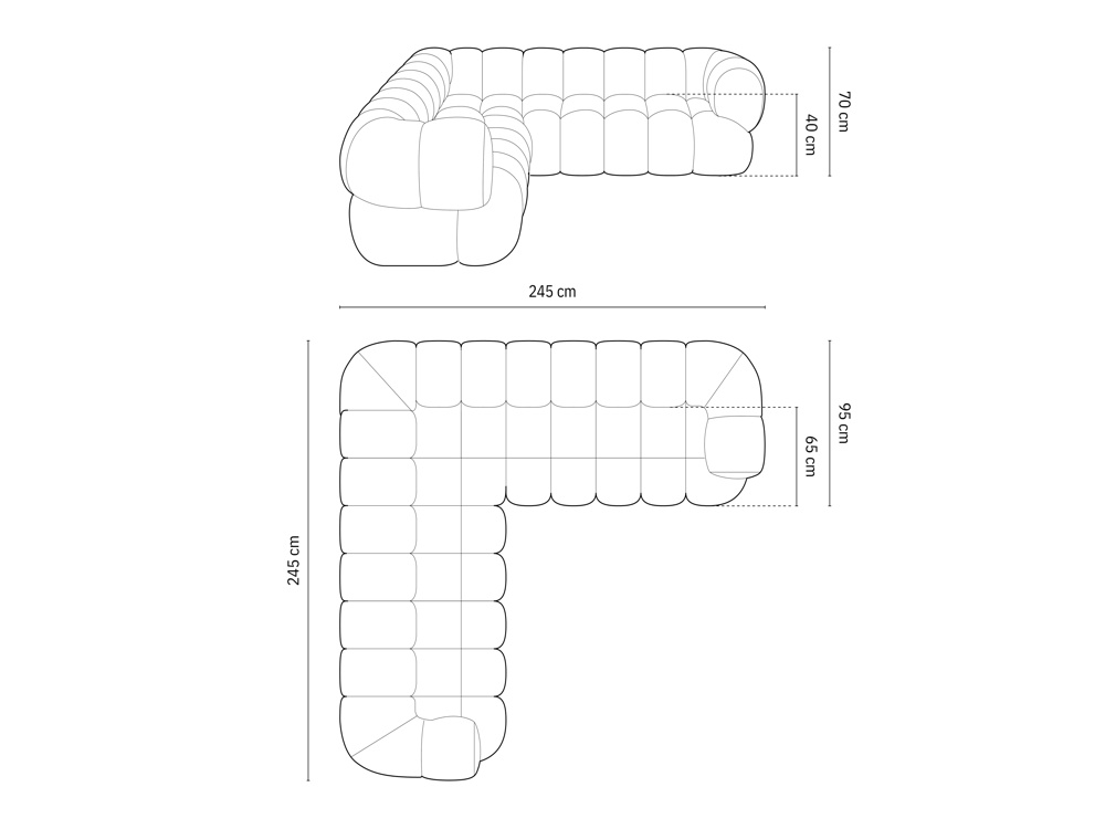 Canapé d'angle modulaire en velours, "Maurice", 5 Places, 245x245x70